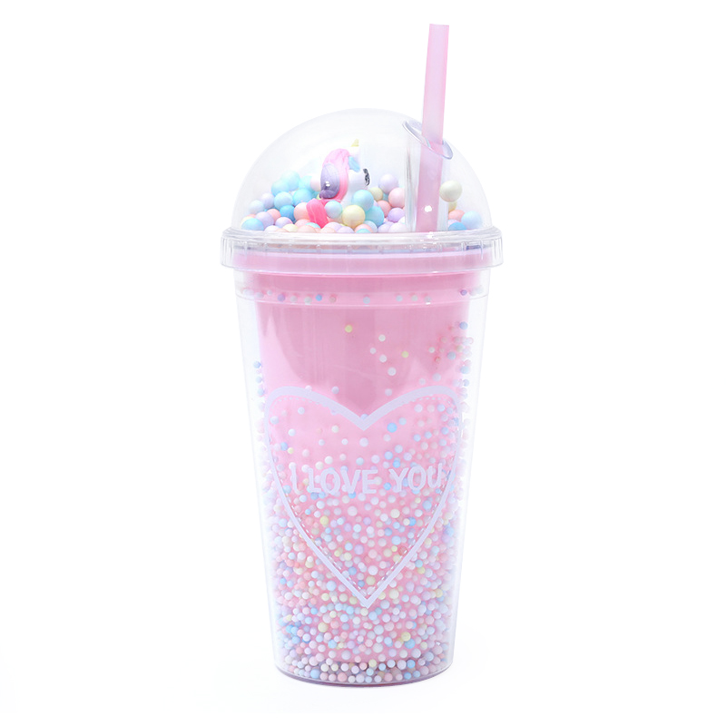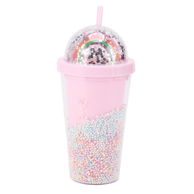 Il coperchio a cupola ruba la scena: scegli tra un arcobaleno scintillante (turbinato con stelle glitterate) o un minuscolo unicorno 3D (incastonato tra perline pastello): è come portare una mini fiaba ovunque tu vada. La doppia parete della tazza è piena di perline pastello fluttuanti e glitter, quindi brilla ad ogni movimento (nessun disordine, solo magia!).