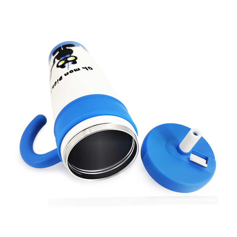 Bicchiere grande in acciaio inossidabile isolato con manico e cannuccia