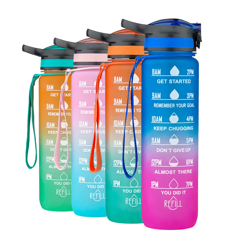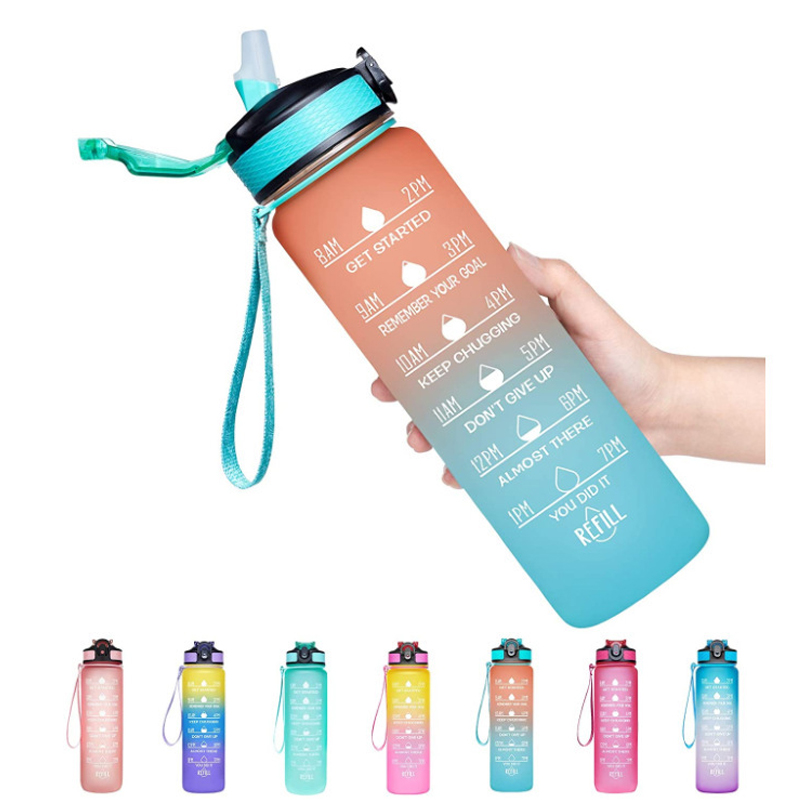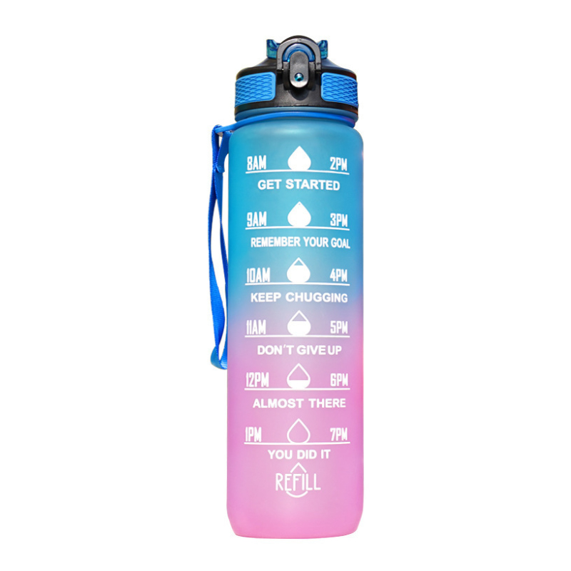 Questa bottiglia d'acqua sportiva da 1000 ml combina le caratteristiche di una tazza spaziale in plastica e di una brocca da viaggio per esterni con un design a colori sfumati. Il suo elegante aspetto sfumato lo rende perfetto da trasportare durante le attività all'aperto, soddisfacendo sia le esigenze di idratazione quotidiana che le esigenze dell'esercizio fisico.