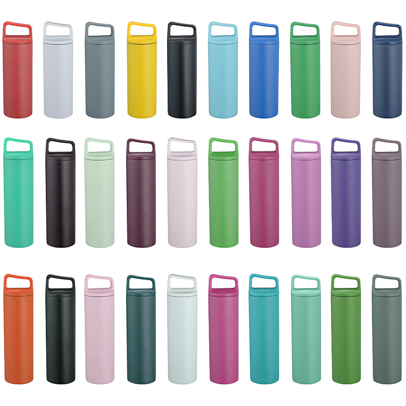 Bicchiere termico skinny da viaggio in metallo con coperchio per manico