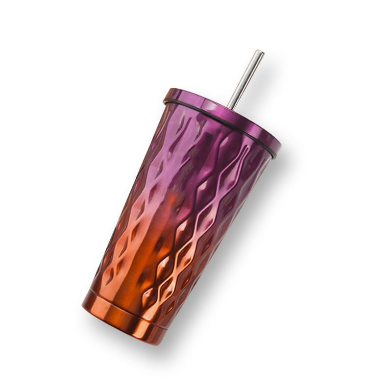 Questa tazza con cannuccia a forma di diamante in acciaio inossidabile ha una capacità di 500 ml ed è