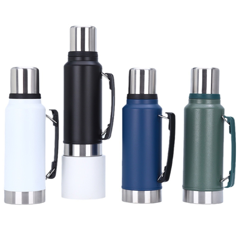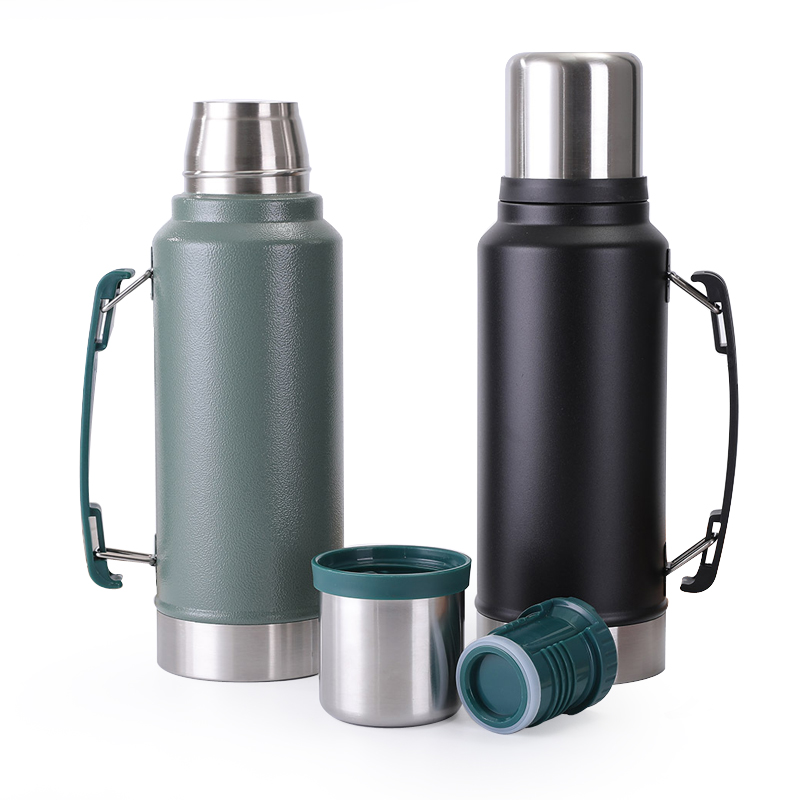 Termosi isolate a vuoto con tazze staccabili abbinate, perfette per l'abbinamento o la condivisione. Eleva la tua esperienza di idratazione con l'affidabilità che dura.