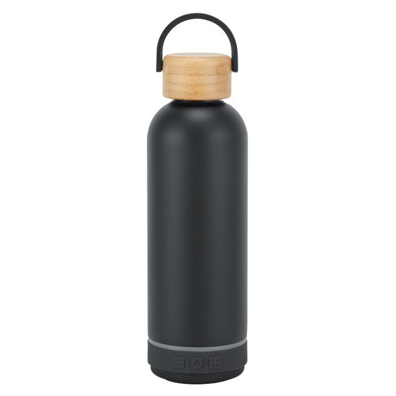 Descrizione del prodotto: Bottiglia isolata con altoparlante Bluetooth con coperchio in bambù: sorseggia, conserva e resta rinfrescato con stile