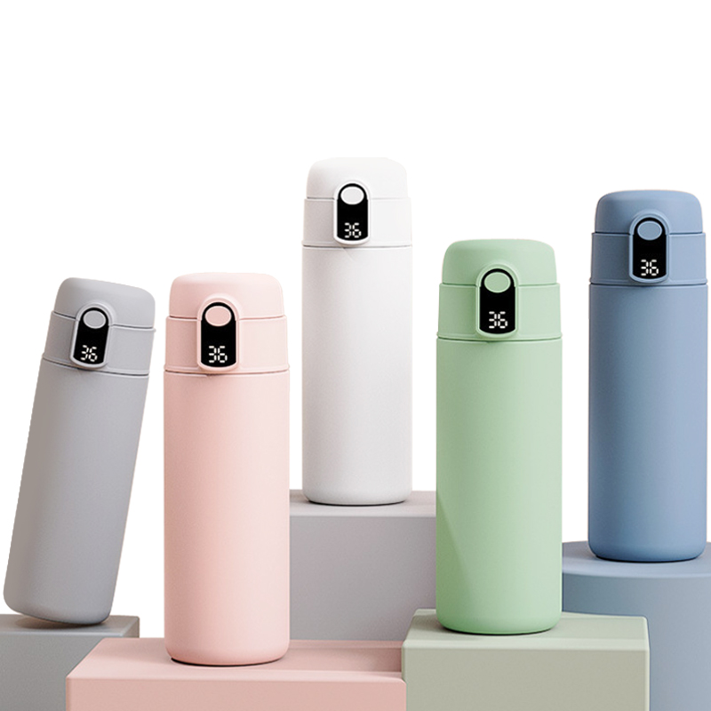 Queste eleganti termosi intelligenti in acciaio inossidabile presentano un design elegante con rinfrescanti schemi di colore in bianco, verde e rosa. Il coperchio Snap-on One-Touch garantisce un semplice funzionamento a una mano. Come tazza da bere all'aperto portatile, è perfetto per le attività quotidiane di pendolarismo e all'aperto, fornendo una comoda idratazione in movimento. La costruzione durevole in acciaio inossidabile mantiene una ritenzione di temperatura ottimale, mantenendo le bevande calde o fredde per periodi prolungati.
