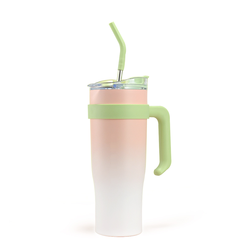 La collezione presenta più opzioni di colore, tra cui combinazioni vibranti di gradiente verde, blu e bianco abbinato a vari design a manico e fasce decorative. Ogni tazza viene fornita con una paglia da bere comoda e un coperchio a scatto igienico che garantisce un facile accesso durante l'uso. Disponibile in più varianti di colore, offriamo anche ordini personalizzati per piccole quantità.