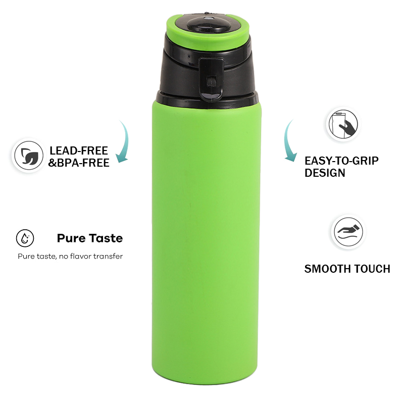 Questa elegante borraccia sportiva portatile in alluminio con una capacità di 710 ml è molto curata nel suo design. L'ampia capacità di 710 ml può soddisfare le esigenze di consumo durante lunghi sport all'aria aperta, fitness o viaggi e ridurre il problema di un'idratazione frequente.
