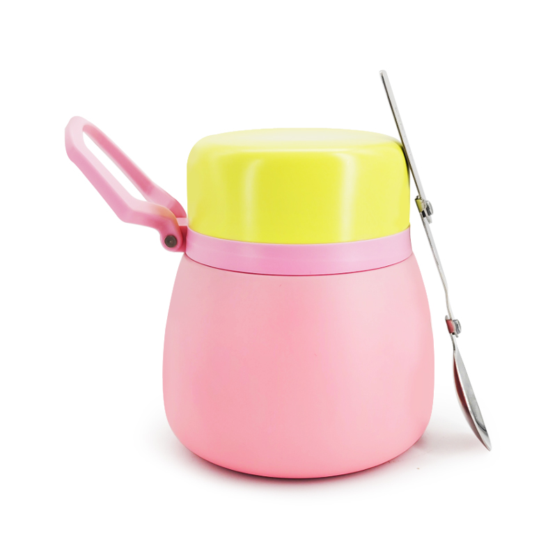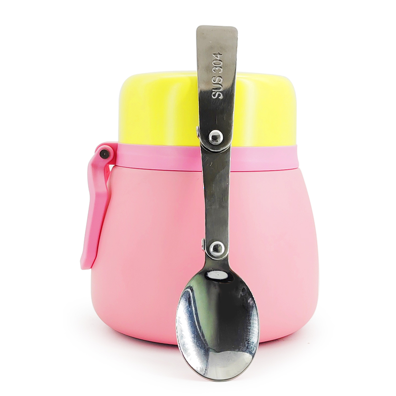 Questa vibrante pentola brasata con una comoda maniglia lo rende facile da trasportare. L'illustrazione seguente mostra la sua versatile capacità di trasportare alimenti, perfetta per cibo per bambini, stufati, zuppe, pasta, yogurt e insalate. Serve a doppio scopo: come contenitore alimentare complementare di un bambino, soddisfacendo anche le esigenze degli adulti per il trasporto di vari piatti. La sua eccellente ritenzione di calore garantisce che questi alimenti rimangono alla temperatura ideale durante il pasto.