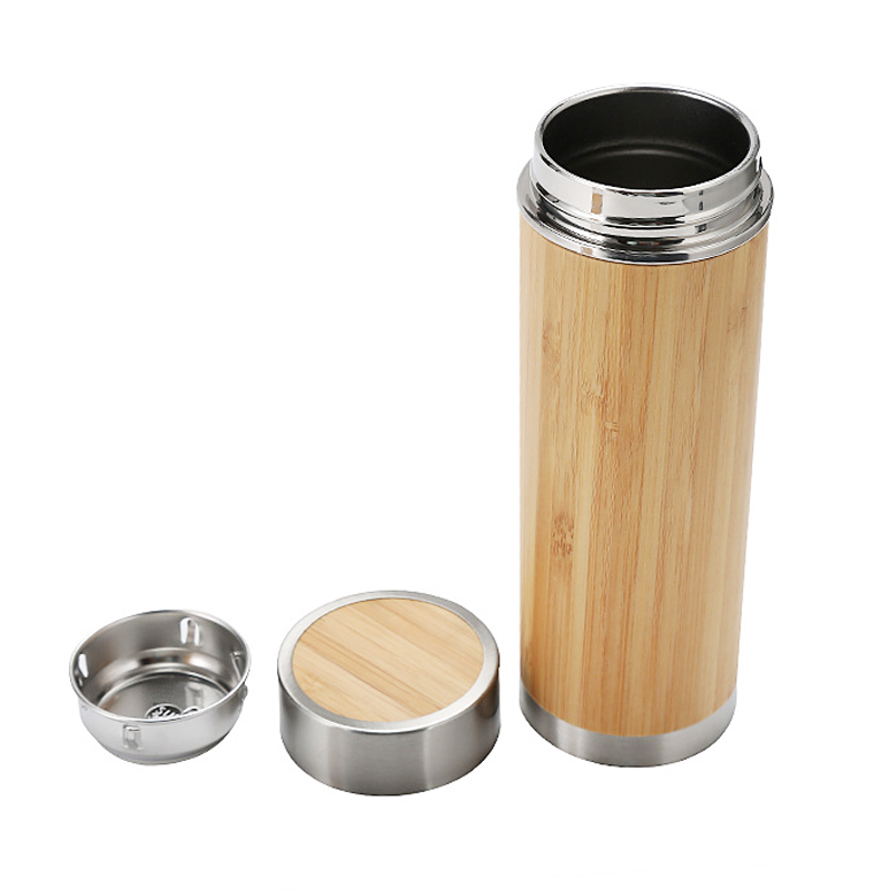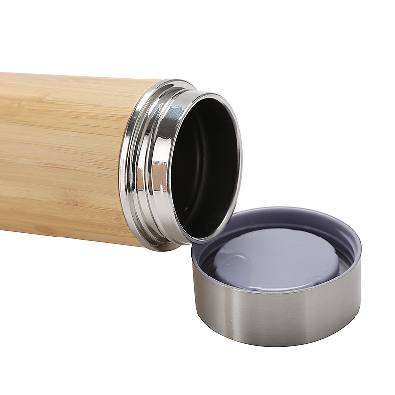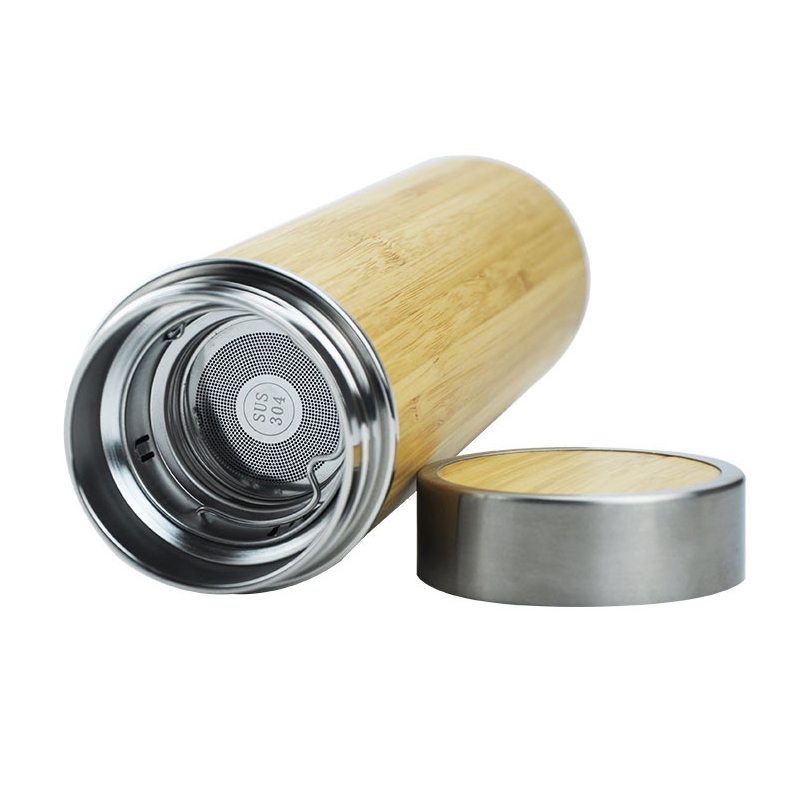 Fusion materiale : la consistenza di bambù esterna è sia naturale, bella e leggera. L'acciaio inossidabile interno ha buone prestazioni di isolamento termico, che possono effettivamente mantenere la temperatura dell'acqua e realizzare la combinazione di funzione pratica e estetica ecologica.