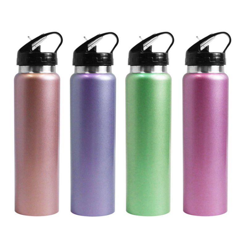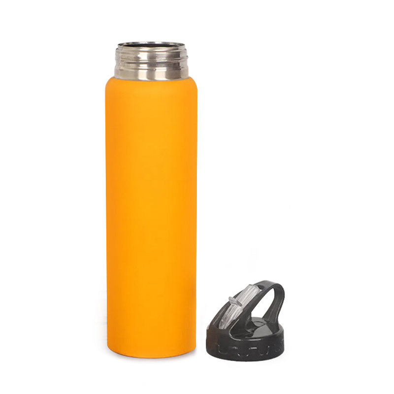 Questa bottiglia d'acqua a sola strato in acciaio inossidabile 304 è dotata di coperchio e paglia, che è molto pratico per le attività sportive e all'aperto.