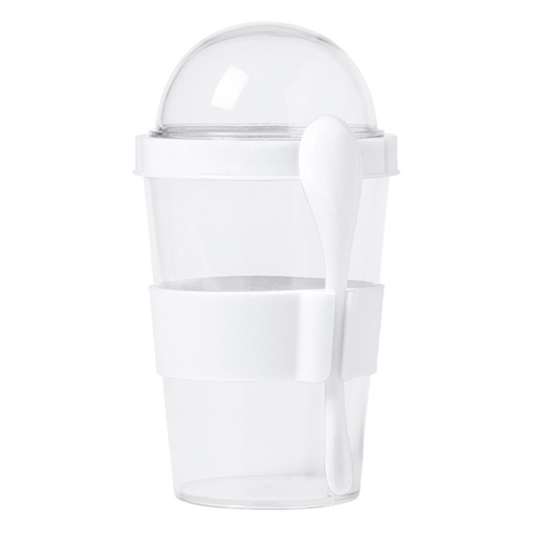 Il coperchio a forma di cupola funge anche da scomparto separato per muesli, cereali o condimenti (niente farina d'avena fradicia!). Riempi la tazza principale con latte, yogurt o frullato e mantieni freschi gli ingredienti secchi finché non sei pronto per mescolarli: perfetto per i pendolari, le mattine in ufficio o i viaggi.