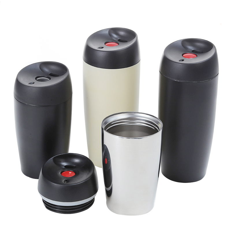 Portabilità e facilità d'uso: conveniente da trasportare e altamente pratici. Il coperchio della tazza è dotato di un pulsante rosso, che può essere gestito con un tocco per aprire il coperchio per un facile bere.