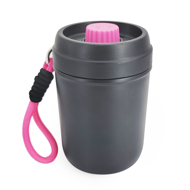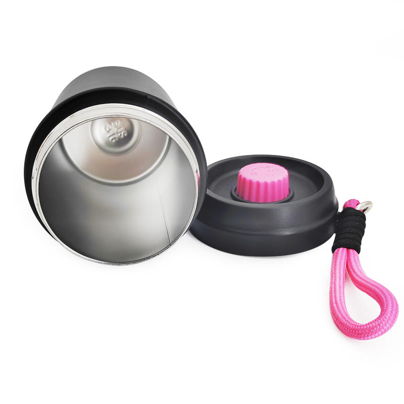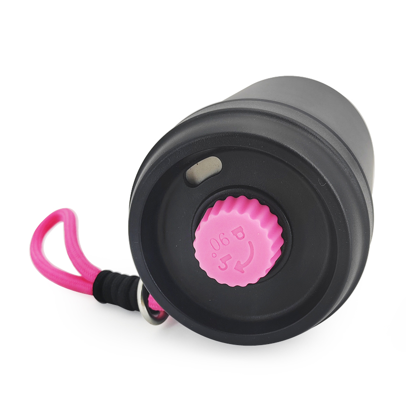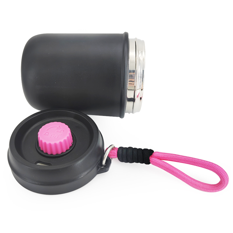 Il design presenta un aspetto minimalista ma pratico, che combina una base grigio scuro con una maniglia rosa e un coperchio della manopola sia per il fascino estetico che per la portabilità. Realizzato in acciaio inossidabile 304, offre una durata sicura con eccellenti proprietà di isolamento termico. Il coperchio sigillato impedisce efficacemente le fuoriuscite, rendendolo ideale per il trasporto di caffè durante i pendolari quotidiani o la conservazione di bevande e snack all'aperto, offrendo sia funzionalità che comodità.