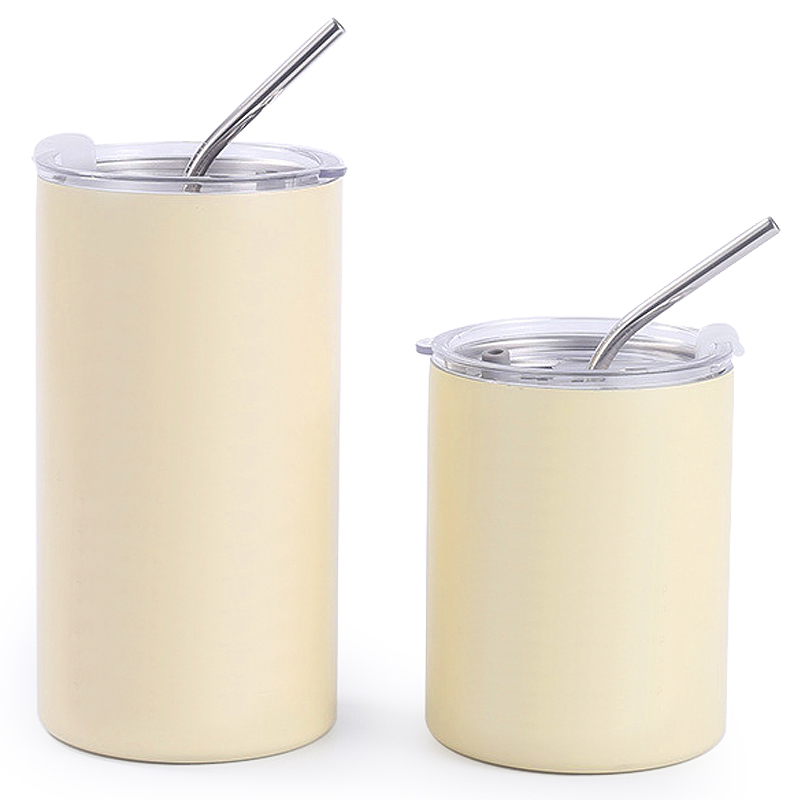 Queste tazze sono acciaio inossidabile a vuoto a doppio strato, con stili di corpo a grigio argento e beige, la semplice forma cilindrica semplice. Con un coperchio trasparente, semplice ma non delicato.